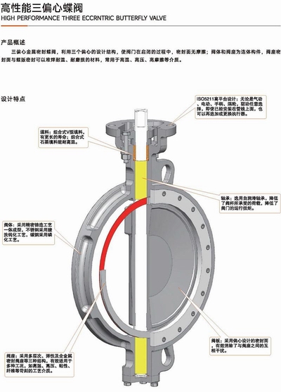 三偏心動態補償:蝶板與閥座漸近接觸,關閉時自鎖密封,磨損后自動補償間隙;